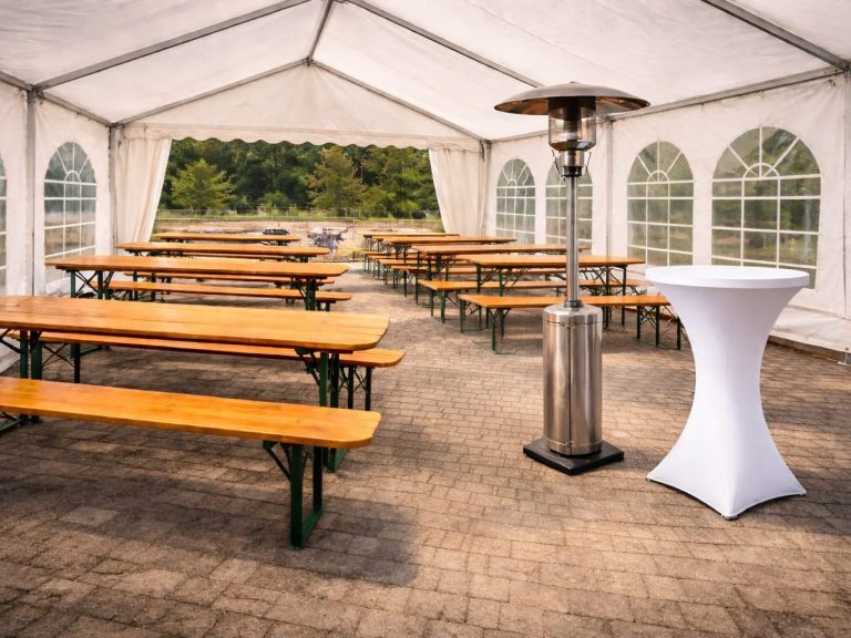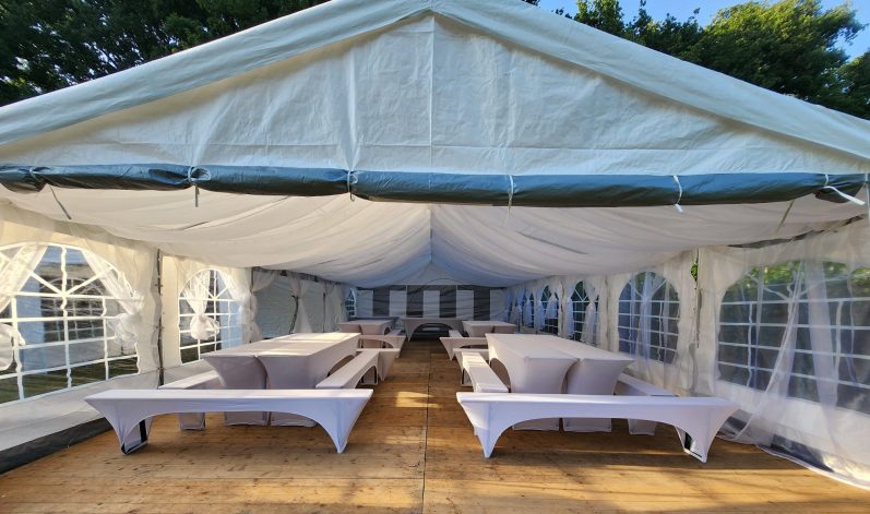 Wir bieten Ihnen hochwertige Zelte in verschiedenen Größen – flexibel einsetzbar für kleine Feiern oder große Veranstaltungen. Ergänzend vermieten wir Tische, Bänke und Eventausstattung, damit Ihr Event optimal ausgestattet ist.